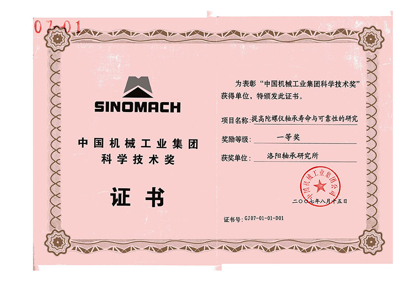 中国机械工业集团科学技术奖一等奖