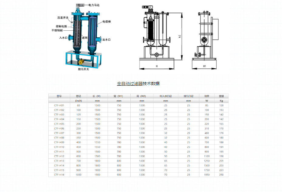 输入电源:380V,50Hz 适用水温:95℃ 工作电压:≤800㎎/L 灭藻率:>99% 过滤精度范围:100-3000μm 浊度达到Ⅱ级要求::(≤20㎎/L) 军团菌:达到国际标准 腐蚀率:达到国际标准 除垢、防垢率:>97% 控制介面:数显、旋钮、开关 全自动过滤器技术数据