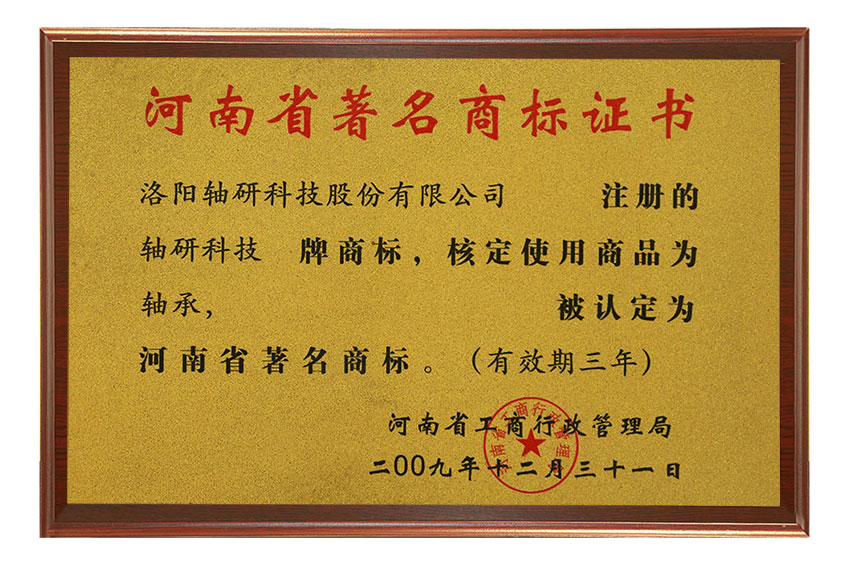 河南省著名商标证书