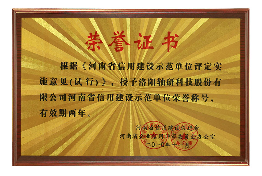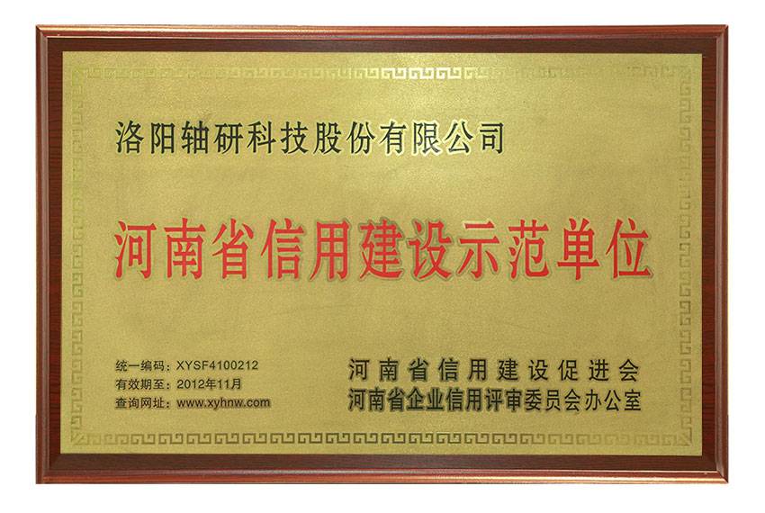 河南省信用建设示范单位荣誉称号